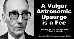 "A Vulgar Astronomic Upsurge is a Fee" is an anagram of "Language is a virus from outer space".
