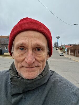 Self portrait (6 November 2025) @ 3:23 p.m. Chapman Street near Central Avenue, view to the west.