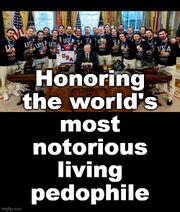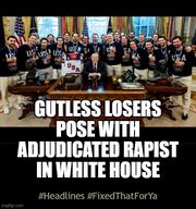 | 08:18, 25 February 2026 | Gutless Losers Pose with Adjudicated Rapist in White House.jpg (file) | 87 KB | Gutless Losers Pose with Adjudicated Rapist in White House {{Fiction}} {{Essays}} Category:Donald Trump Category:Donald Trump (nonfiction) {{Category: Hockey}} {{Category: Olympics}} {{Category: Men}} | 1 | |