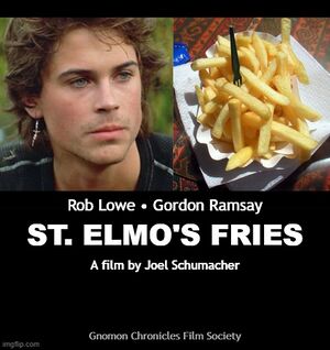 St. Elmo's Fries is a 1985 American coming-of-age foodie film directed by Joel Schumacher and starring Gordon Ramsay, Emilio Estevez, Rob Lowe, Andrew McCarthy, Demi Moore, Judd Nelson, Ally Sheedy, Andie MacDowell, and Mare Winningham.