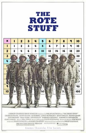 The Rote Stuff is an epic historical memorization technique directed by Philip Kaufman and based on the 1979 book of the same name by Tom Wolfe.